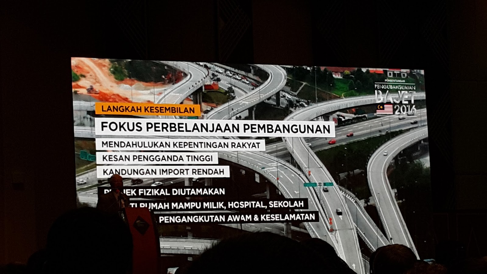 AS the Global economy further plunges, Malaysia is dragged along. As a consequence, remedy is inevitable, in a more sacrificial manner. 2016 Budget had to be cut. However, PM Najib Razak soothes the citizens with a positive and moderate budget. Development is still on albeit slower pace. Human Capital remains as key focus. Reliance on oil revenues have been reduced to 14% only. Diversification and tax reform kicks in. Trans Pacific agreement has begun for a more promising open economy. Ringgit has stabilised as observed in the past 6 months. Operational expenditures have been masively cut particularly subsidies. Hopefully 2016 will be a year when Malaysia emerges from the deep ocean. To complete the picture, here are the slides presented by Y.A.B. Dato' Seri Najib Razak, Prime Minister of Malaysia, today: